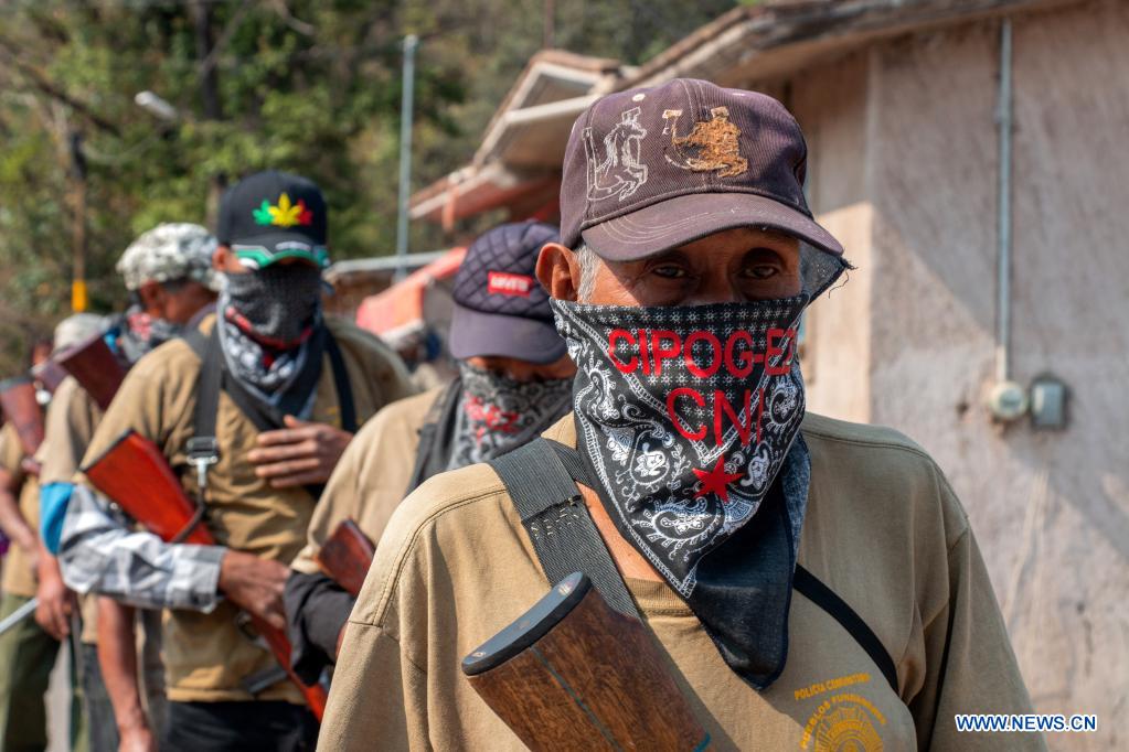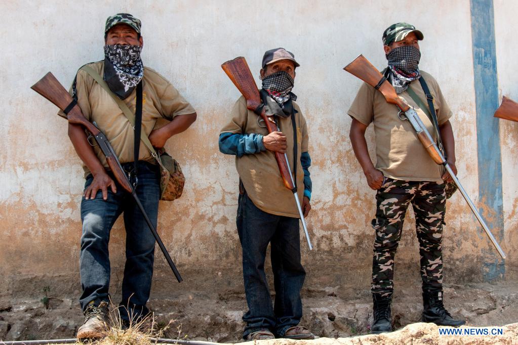 GUERRERO, 30 abril, 2021 (Xinhua) -- Miembros de la policía comunitaria vigilan durante una marcha contra la violencia en el marco del Día del Niño, en Alcozacán, en el estado de Guerrero, México, el 30 de abril de 2021. (Xinhua/Franyeli García)