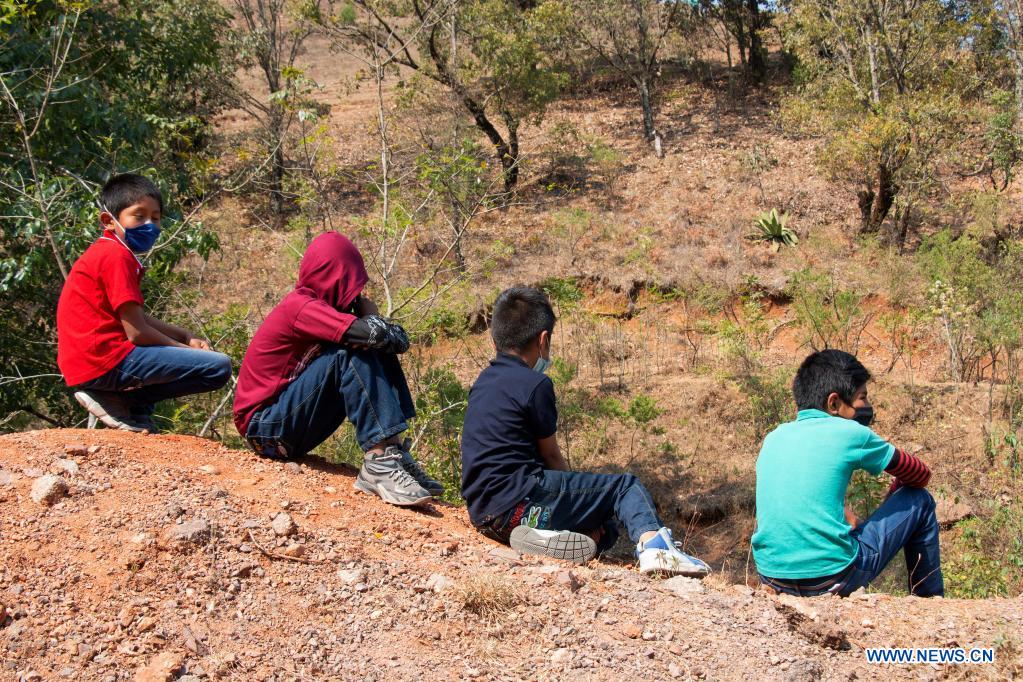 GUERRERO, 30 abril, 2021 (Xinhua) -- Niños esperan previo a una marcha contra la violencia en el marco del Día del Niño, en Alcozacán, en el estado de Guerrero, México, el 30 de abril de 2021. (Xinhua/Franyeli García)