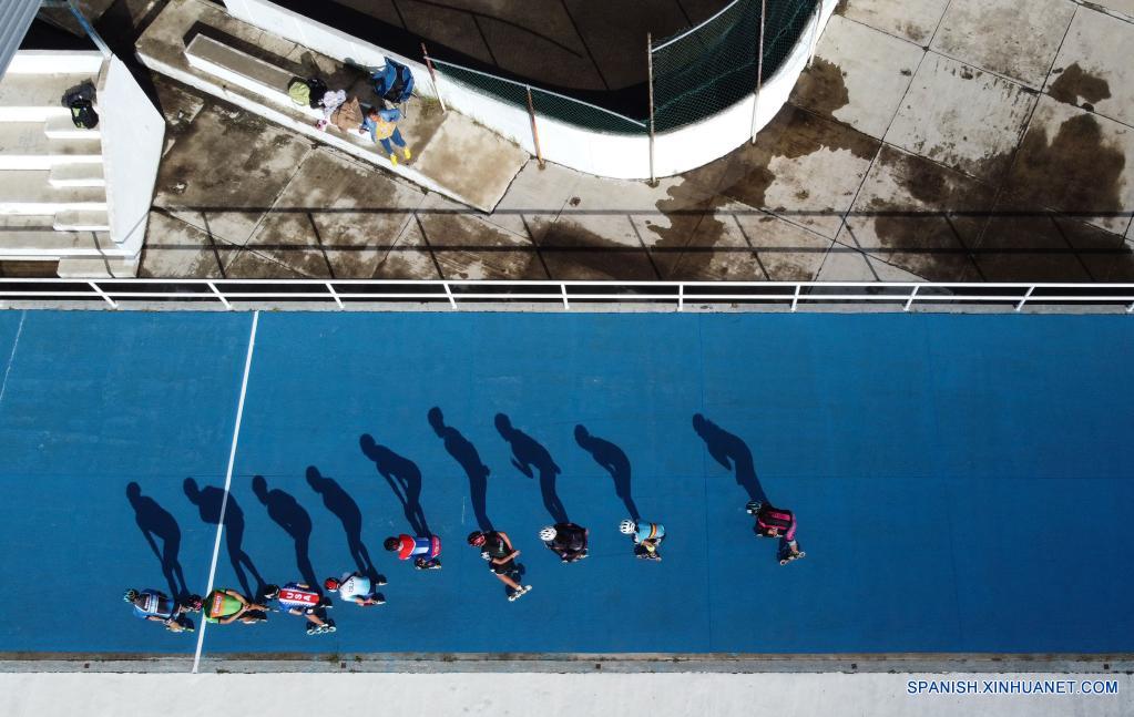 TLAXCALA, 26 junio, 2021 (Xinhua) -- Integrantes de la selección de patinaje de velocidad del Instituto Politécnico Nacional participan en una sesión de entrenamiento previo a su participación en los Nacionales de la Comisión Nacional de Cultura Física y Deporte 2021 en un patinódromo, en el municipio de Apizaco, estado de Tlaxcala, México, el 26 de junio de 2021. (Xinhua/Jesús Alvarado)