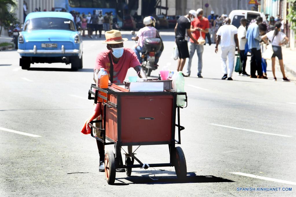 LA HABANA, 3 julio, 2021 (Xinhua) -- Un vendedor ambulante empuja su carrito por una calle, en La Habana, capital de Cuba, el 3 de julio de 2021. (Xinhua/Joaquín Hernández)