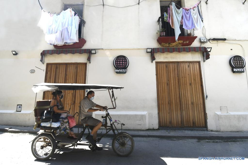 LA HABANA, 3 julio, 2021 (Xinhua) -- Un bicitaxi circula por una calle, en La Habana, capital de Cuba, el 3 de julio de 2021. (Xinhua/Joaquín Hernández)