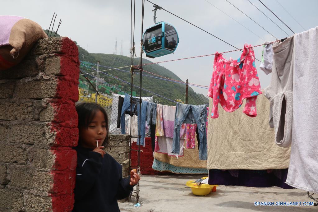 CIUDAD DE MEXICO, 17 julio, 2021 (Xinhua) -- Una niña reacciona mientras pasan las cabinas de la Línea 1 del Cablebús, en la Ciudad de México, capital de México, el 17 de julio de 2021. La Línea 1 del Cablebús cuenta con seis estaciones y conecta con otros sistemas de transporte como la Línea 3 del Metro y las Líneas 1 y 7 del Metrobús. Este nuevo transporte ayudará a la movilización de miles de ciudadanos en la zona norte de la ciudad. (Xinhua/Silvana Flores)