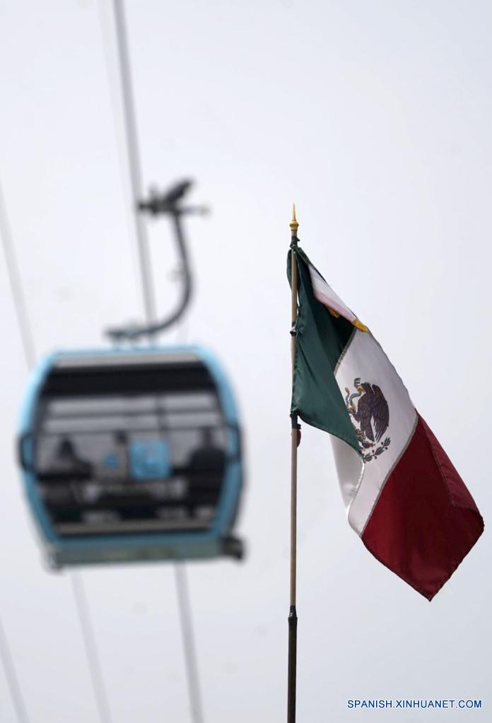 CIUDAD DE MEXICO, 17 julio, 2021 (Xinhua) -- Imagen del 17 de julio de 2021 de una bandera nacional mexicana y una cabina de la Línea 1 del Cablebús, en la Ciudad de México, capital de México. La Línea 1 del Cablebús cuenta con seis estaciones y conecta con otros sistemas de transporte como la Línea 3 del Metro y las Líneas 1 y 7 del Metrobús. Este nuevo transporte ayudará a la movilización de miles de ciudadanos en la zona norte de la ciudad. (Xinhua/David de la Paz)
