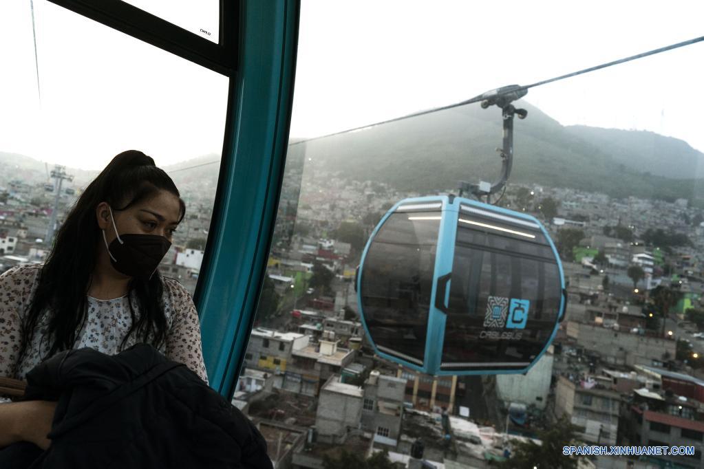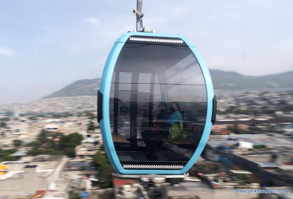 CIUDAD DE MEXICO, 17 julio, 2021 (Xinhua) -- Personas viajan a bordo de una cabina de la Línea 1 del Cablebús, en la Ciudad de México, capital de México, el 17 de julio de 2021. La Línea 1 del Cablebús cuenta con seis estaciones y conecta con otros sistemas de transporte como la Línea 3 del Metro y las Líneas 1 y 7 del Metrobús. Este nuevo transporte ayudará a la movilización de miles de ciudadanos en la zona norte de la ciudad. (Xinhua/David de la Paz)