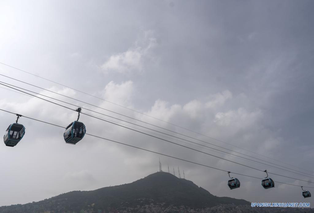 CIUDAD DE MEXICO, 17 julio, 2021 (Xinhua) -- Imagen del 17 de julio de 2021 de cabinas de la Línea 1 del Cablebús, en la Ciudad de México, capital de México. La Línea 1 del Cablebús cuenta con seis estaciones y conecta con otros sistemas de transporte como la Línea 3 del Metro y las Líneas 1 y 7 del Metrobús. Este nuevo transporte ayudará a la movilización de miles de ciudadanos en la zona norte de la ciudad. (Xinhua/David de la Paz)
