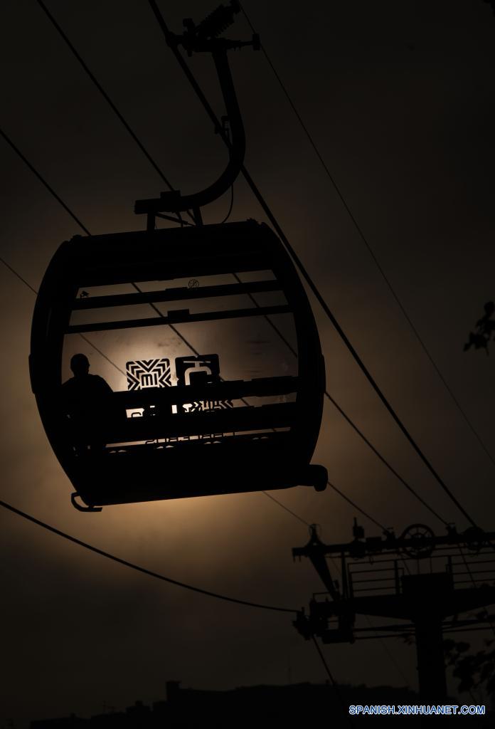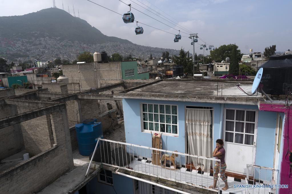 CIUDAD DE MEXICO, 17 julio, 2021 (Xinhua) -- Una mujer reacciona mientras pasan las cabinas de la Línea 1 del Cablebús, en la Ciudad de México, capital de México, el 17 de julio de 2021. La Línea 1 del Cablebús cuenta con seis estaciones y conecta con otros sistemas de transporte como la Línea 3 del Metro y las Líneas 1 y 7 del Metrobús. Este nuevo transporte ayudará a la movilización de miles de ciudadanos en la zona norte de la ciudad. (Xinhua/David de la Paz)