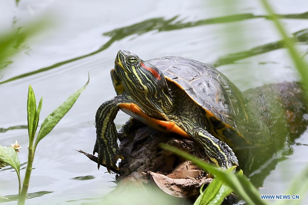 SANTA LUCIA, 21 julio, 2021 (Xinhua) -- Imagen del 21 de julio de 2021 de una tortuga en una laguna del municipio de Santa Lucia, en el departamento de Francisco Morazán, Honduras. (Xinhua/Rafael Ochoa)