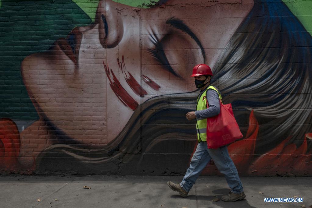 CIUDAD DE MEXICO, 28 julio, 2021 (Xinhua) -- Un hombre camina frente a un mural, en la Ciudad de México, capital de México, el 28 de julio de 2021. (Xinhua/Olivia Aviña)