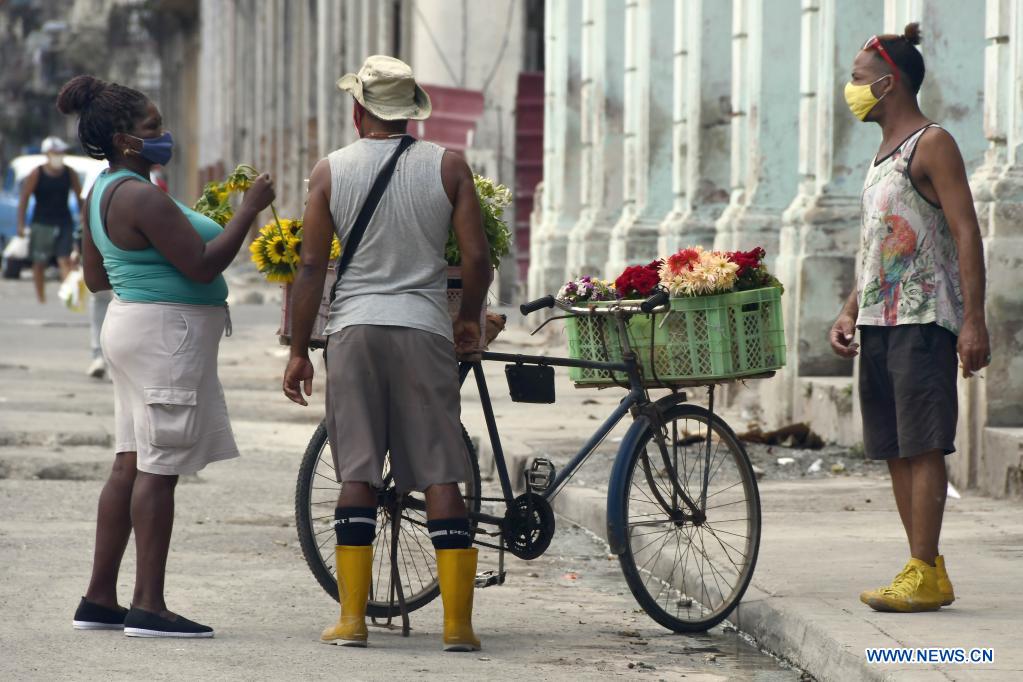 LA HABANA, 21 agosto, 2021 (Xinhua) -- Una mujer compra flores a un vendedor ambulante en una calle, en La Habana, capital de Cuba, el 21 de agosto de 2021. (Xinhua/Joaquín Hernández)