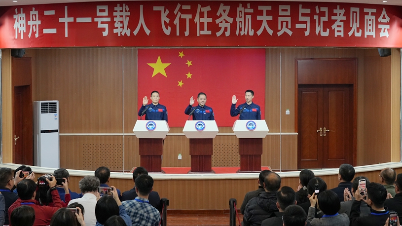 Astronautas de misión Shenzhou-21 de China se reúnen con la prensa