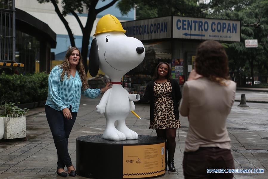 Dos mujeres posaron con una figura de Snoopy en una calle de Sao Paulo, Brasil el pasado 15 de enero. De acuerdo de prensa local, figuras de Snoopy fueron colocadas en sitios turísticos como parte de la promoción del filme "Charlie Brown y Snoopy: Película de los cacahuetes." (Xinhua/Rahel Patrasso)