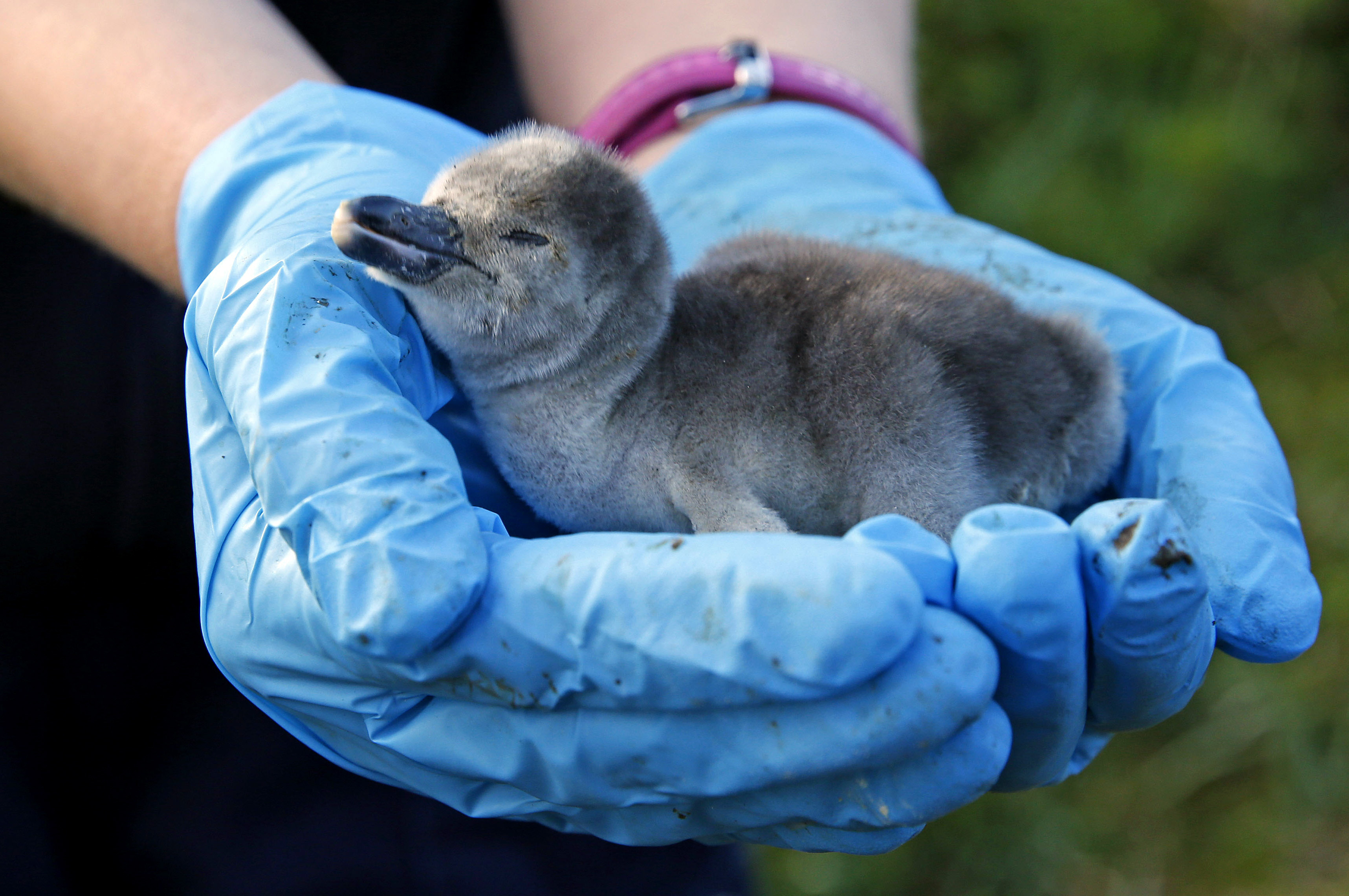 CHESTER, 5 abr (Xinhua) -- Un empleado del Zoológico de Chester sostuvo un polluelo de pingüino de Humboldt de dos días de nacido, en Chester, Reino Unido, el 5 de abril. Empleados del zoológico presentaron el martes a polluelos de pingüino de Humboldt que fueron nombrados como las marcas de frituras favoritas de sus cuidadores, de acuerdo con información de la prensa local. (Xinhua/Peter Byrne/Pa Wire/ZUMAPRESS)