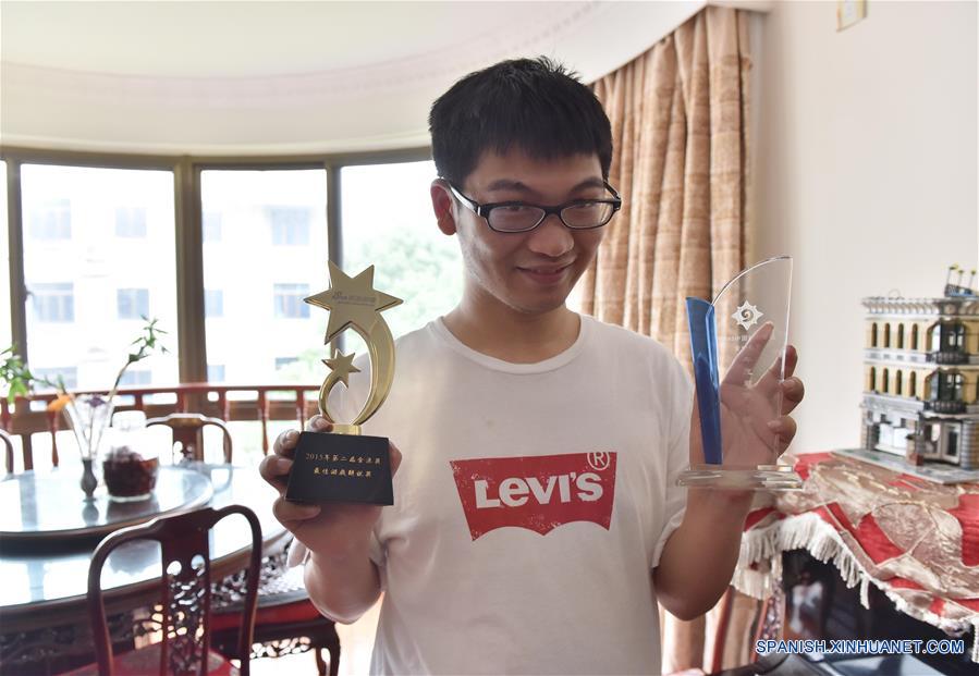 BEIJING, 22 jul (Xinhua) -- Wang Taotao, celebridad de internet chino, muestra recientemente sus trofeos de concurso en Shanghai, este de China. Wang, nacido en el año 1989, es un clásico hombre en casa quien fue un jugador de juegos profesional en línea. Su trabajo actual es transmitir en vivo su interpretación en cuanto juega juegos.