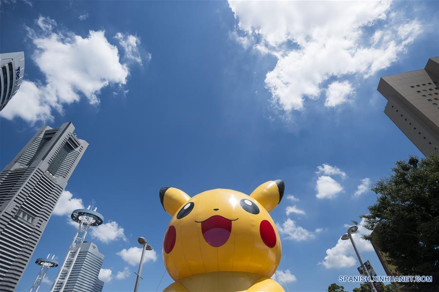 YOKOHAMA, agosto 7, 2016 (Xinhua) -- Una escultura gigante del personaje Pikachu, del videojuego Pokémon, es exhibida en la zona de Minatomirai, en la ciudad de Yokohama, Japón, el 7 de agosto de 2016. De acuerdo con información de la prensa local, las calles de Yokohama se llenaron con figuras del videojuego de Pokemón en el marco del Desfile Anual de Pikachu, con motivo a las vacaciones de verano. (Xinhua/Alessandro Di Ciommo/ZUMAPRESS)