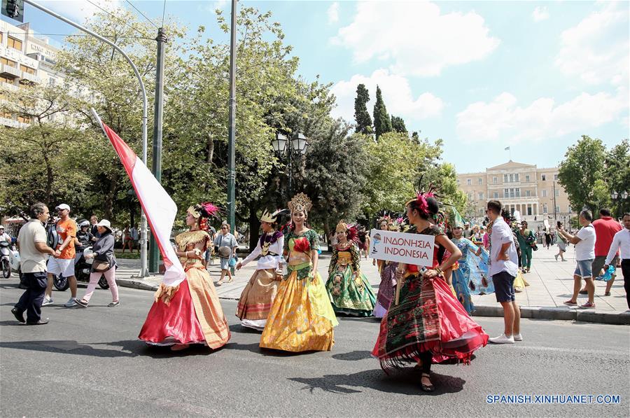 ATENAS, septiembre 6, 2016 (Xinhua) -- Imagen del 30 de agosto de 2016 de bailarinas participando en un preespectáculo, en Atenas, Grecia. Griegos y visitantes extranjeros bailaron del 31 de agosto al 4 de septiembre a los ritmos de la música popular de todo el mundo durante el festival internacional de baile y música tradicional Earthdancers. Organizado por quinto año en Atenas, el festival que pretende acercar a la gente a través de esta forma al arte, presentó más de 300 bailarines de Grecia, Brasil, Indonesia, Argentina, Serbia, Paraguay, Georgia, Costa Rica y Hungría. (Xinhua/Lefteris Partsalis)