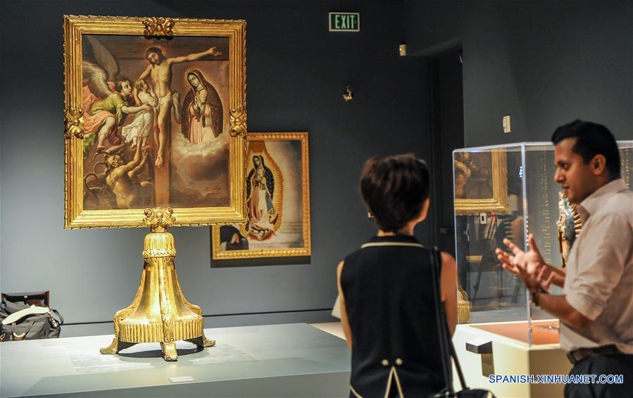 CALIFORNIA, octubre 6, 2016 (Xinhua) -- Visitantes observan la exhibición "La Virgen de Guadalupe: Imágenes en el México Colonial", durante una vista previa para los medios, en el Museo Bowers, en California, Estados Unidos de América, el 6 de octubre de 2016. De acuerdo con información de los organizadores, la exhibición "La Virgen de Guadalupe: Imágenes en el México Colonial" será abierta al público el 8 de octubre en el Museo Bowers en el sur de California, con piezas de 15 diferentes museos, centros culturales e iglesias en México, presentando 60 obras de arte, incluyendo pinturas, esculturas, grabados, platas, textiles y otros objetos de devoción del periodo colonial de México. (Xinhua/Zhang Chaoqun)
