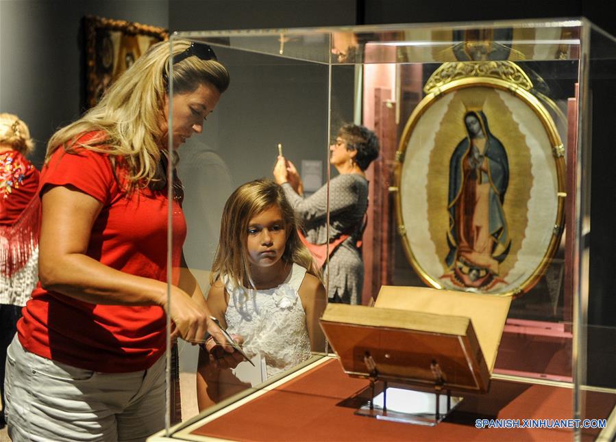 CALIFORNIA, octubre 6, 2016 (Xinhua) -- Visitantes observan la exhibición "La Virgen de Guadalupe: Imágenes en el México Colonial", durante una vista previa para los medios, en el Museo Bowers, en California, Estados Unidos de América, el 6 de octubre de 2016. De acuerdo con información de los organizadores, la exhibición "La Virgen de Guadalupe: Imágenes en el México Colonial" será abierta al público el 8 de octubre en el Museo Bowers en el sur de California, con piezas de 15 diferentes museos, centros culturales e iglesias en México, presentando 60 obras de arte, incluyendo pinturas, esculturas, grabados, platas, textiles y otros objetos de devoción del periodo colonial de México. (Xinhua/Zhang Chaoqun)
