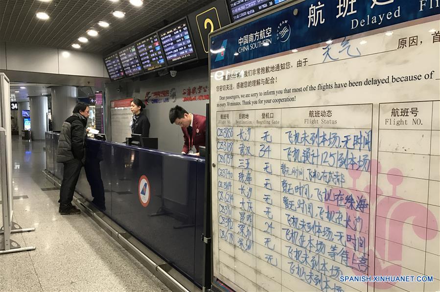 BEIJING, diciembre 20, 2016 (Xinhua) -- Un tablero de información en la Terminal 2 muestra que muchos vuelos están demorados o cancelados en el Aeropuerto Internacional Capital de Beijing, en Beijing, capital de China, el 20 de diciembre de 2016. El pesado esmog del lunes por la noche a las primeras horas de martes ha causado demoras y cancelaciones de vuelos en el aeropuerto. (Xinhua/Li Jing)