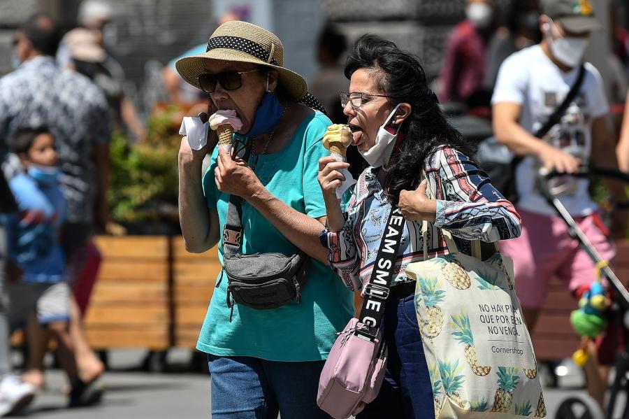 SANTIAGO, 9 diciembre, 2020 (Xinhua) -- Mujeres comen helado mientras caminan por una calle en Santiago, capital de Chile, el 9 de diciembre de 2020. (Xinhua/Jorge Villegas)