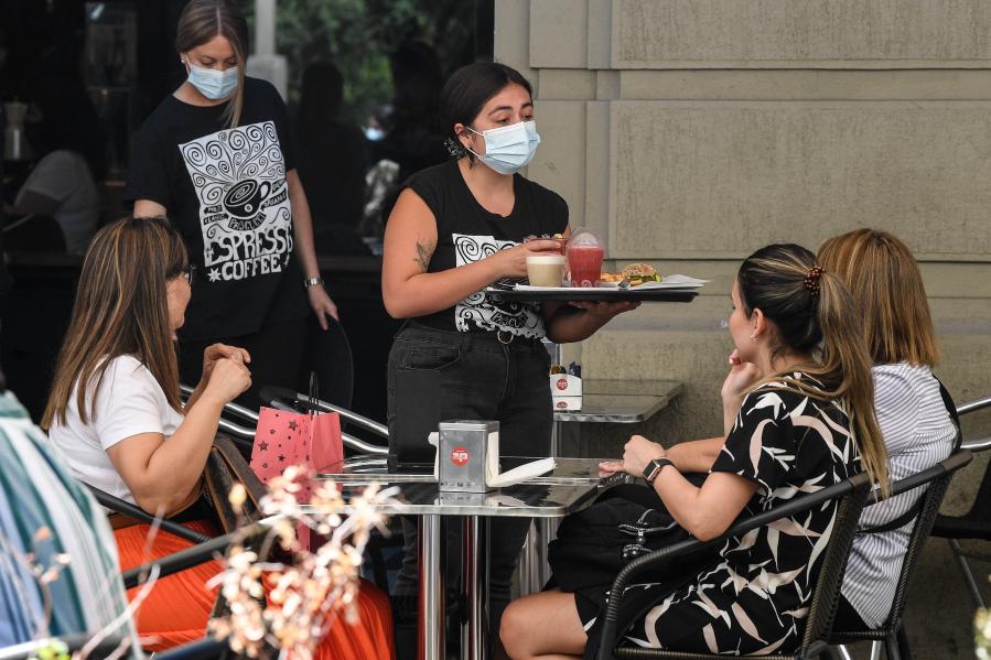 SANTIAGO, 9 diciembre, 2020 (Xinhua) -- Una mesera atiende a clientas en un restaurante en Santiago, capital de Chile, el 9 de diciembre de 2020. (Xinhua/Jorge Villegas)