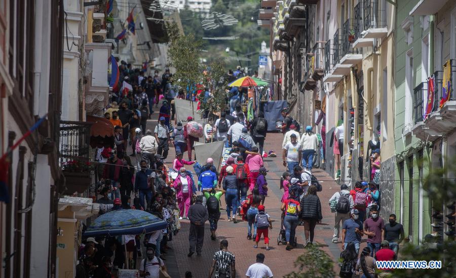 QUITO, 8 diciembre, 2020 (Xinhua) -- Personas caminan por una calle en Quito, capital de Ecuador, el 8 de diciembre de 2020. (Xinhua/Santiago Armas)