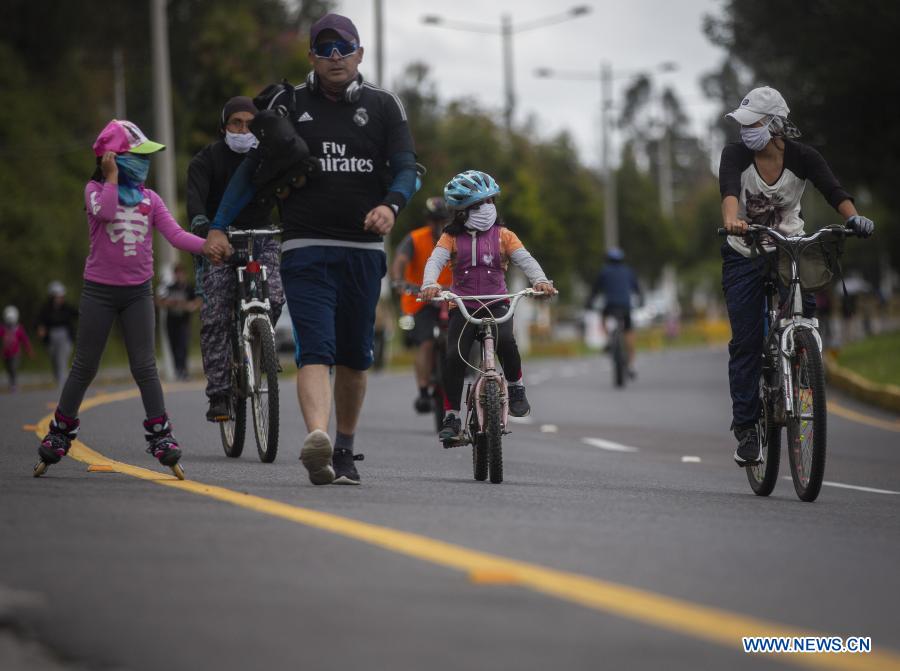 QUITO, 6 diciembre, 2020 (Xinhua) -- Una familia se ejercita en el ciclopaseo dominical en la autopista General Rumiñahui, en Quito, capital de Ecuador, el 6 de diciembre de 2020. (Xinhua/Santiago Armas)