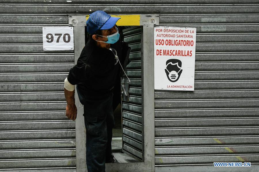 SANTIAGO, 18 diciembre, 2020 (Xinhua) -- Un hombre observa en la entrada de una tienda cerrada, en Santiago, capital de Chile, el 18 de diciembre de 2020. (Xinhua/Jorge Villegas)