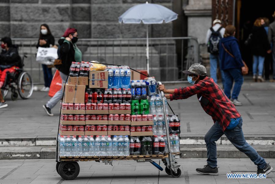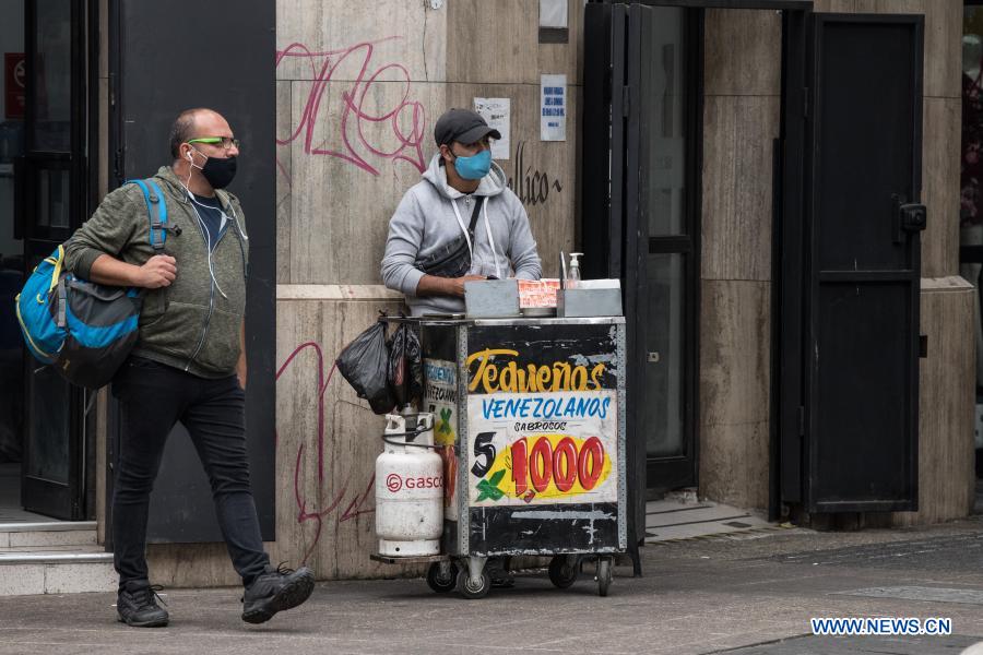 SANTIAGO, 18 diciembre, 2020 (Xinhua) -- Un vendedor ambulante ofrece sus productos en una calle, en Santiago, capital de Chile, el 18 de diciembre de 2020. (Xinhua/Jorge Villegas)