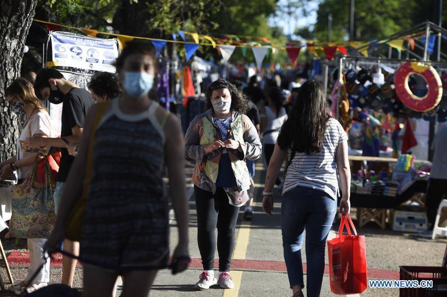 MONTEVIDEO, 23 diciembre, 2020 (Xinhua) -- Personas recorren los puestos de una feria navideña, previo a la Nochebuena, en el Parque Rodó, en Montevideo, capital de Uruguay, el 23 de diciembre de 2020. (Xinhua/Nicolás Celaya)