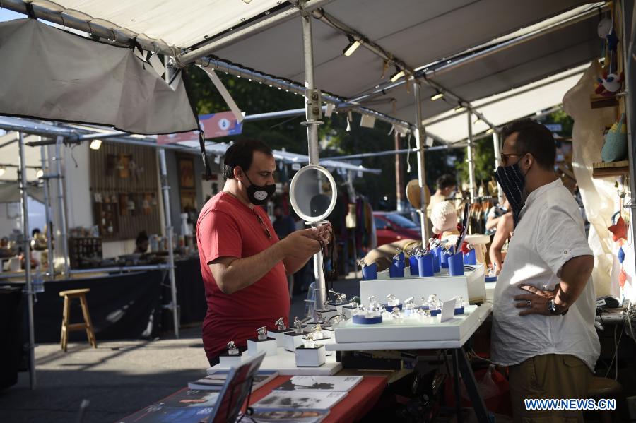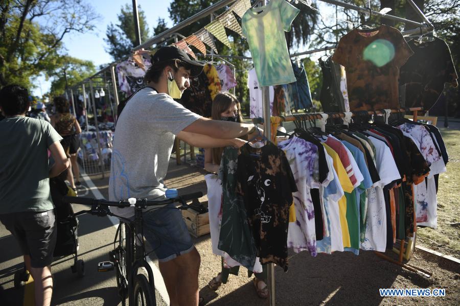 MONTEVIDEO, 23 diciembre, 2020 (Xinhua) -- Personas realizan compras en un puesto de una feria navideña, previo a la Nochebuena, en el Parque Rodó, en Montevideo, capital de Uruguay, el 23 de diciembre de 2020. (Xinhua/Nicolás Celaya)