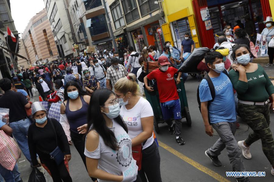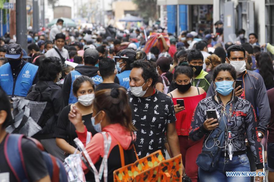 LIMA, 22 diciembre, 2020 (Xinhua) -- Personas caminan por la zona comercial de Mesa Redonda, en Lima, Perú, el 22 de diciembre de 2020. (Xinhua/Mariana Bazo)