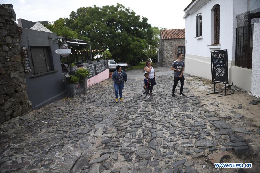 COLONIA, 2 febrero, 2021 (Xinhua) -- Personas caminan por una calle, en el Centro Histórico de la ciudad de Colonia del Sacramento, en el departamento de Colonia, Uruguay, el 2 de febrero de 2021. (Xinhua/Nicolás Celaya)