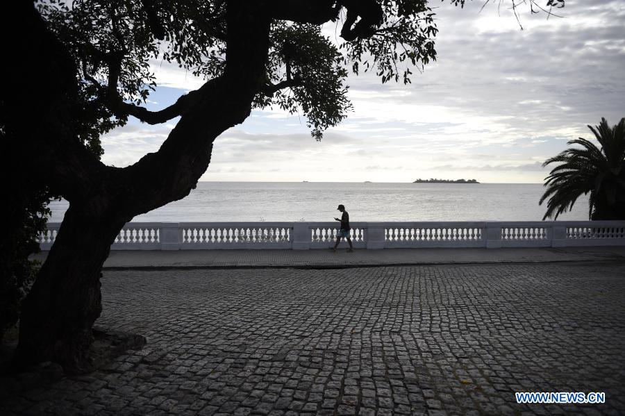 COLONIA, 2 febrero, 2021 (Xinhua) -- Un hombre camina por la rambla, en el Centro Histórico de la ciudad de Colonia del Sacramento, en el departamento de Colonia, Uruguay, el 2 de febrero de 2021. (Xinhua/Nicolás Celaya)