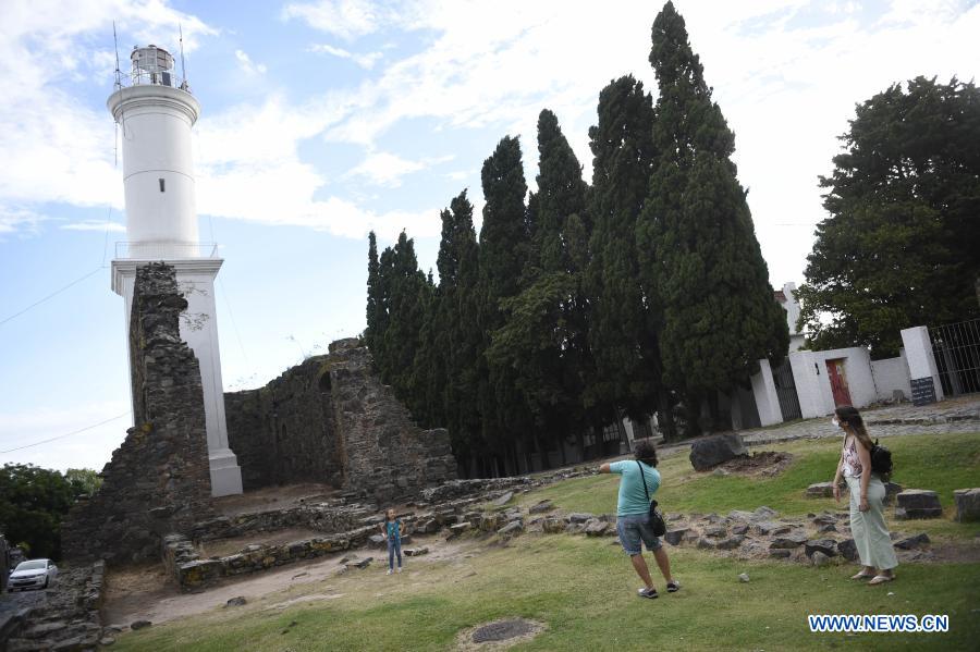 COLONIA, 2 febrero, 2021 (Xinhua) -- Personas toman fotografías frente al faro, en el Centro Histórico de la ciudad de Colonia del Sacramento, en el departamento de Colonia, Uruguay, el 2 de febrero de 2021. (Xinhua/Nicolás Celaya)