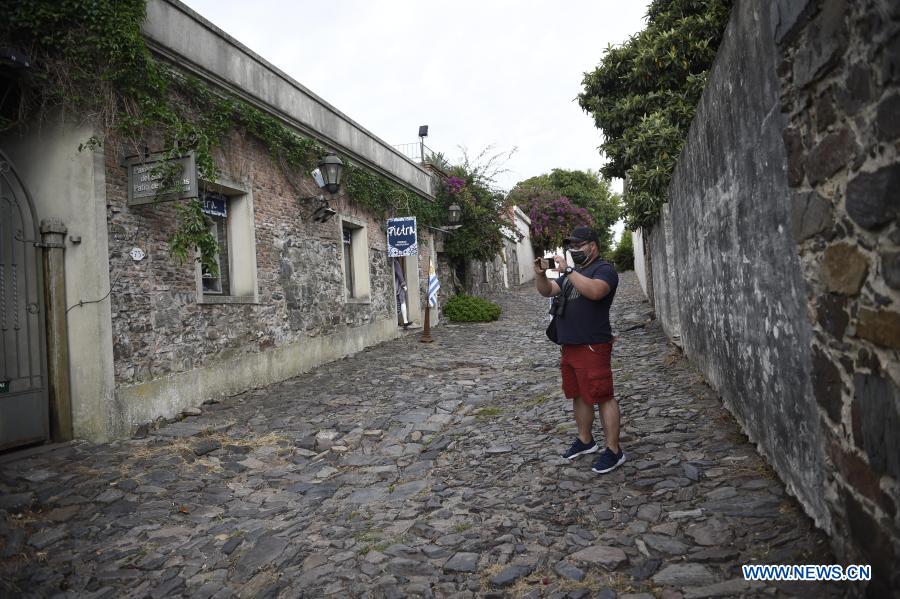 COLONIA, 2 febrero, 2021 (Xinhua) -- Un hombre toma una fotografía en una calle, en el Centro Histórico de la ciudad de Colonia del Sacramento, en el departamento de Colonia, Uruguay, el 2 de febrero de 2021. (Xinhua/Nicolás Celaya)
