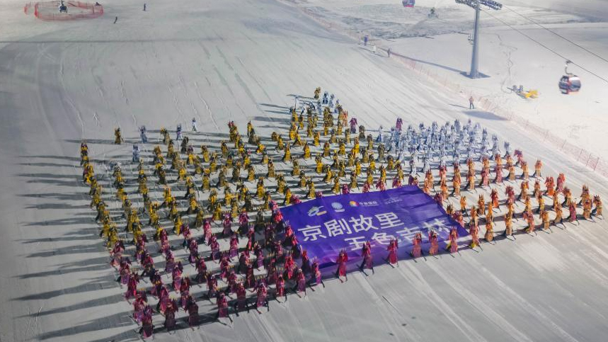 Esquiadores vestidos con trajes de la Opera de Pekín esquían en Jilin