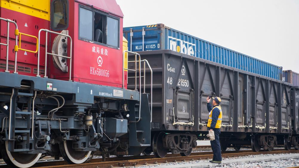 Tren de carga con vehículos de nueva energía parte de Chongqing