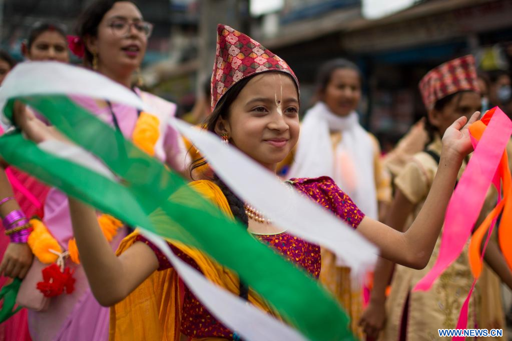 KATMANDU, 1 julio, 2022 (Xinhua) -- Devotas celebran el festival Rath Yatra, en Katmandú, Nepal, el 1 de julio de 2022. (Xinhua/Sulav Shrestha)