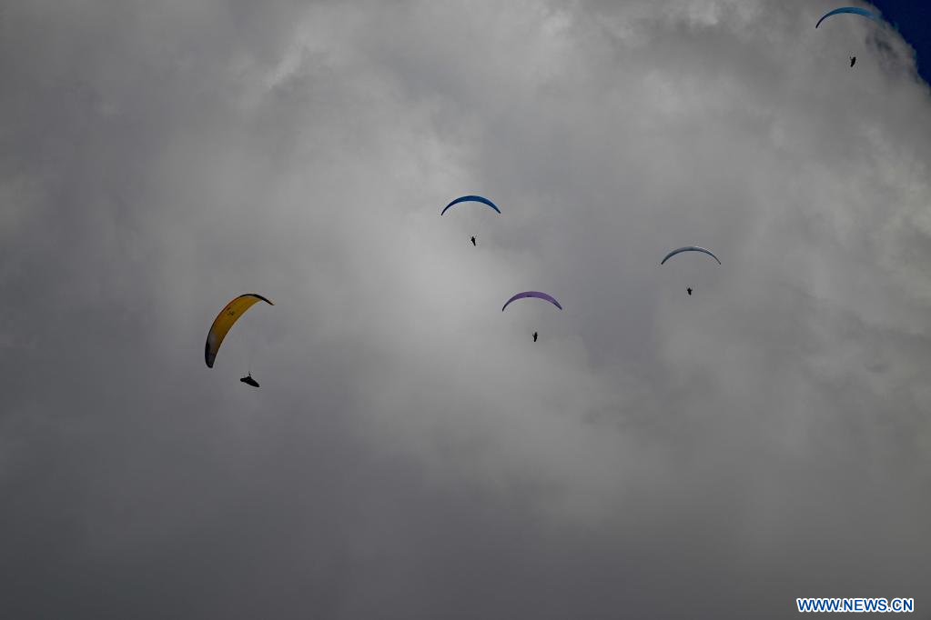 KRUSHEVO, 20 julio, 2022 (Xinhua) -- Pilotos vuelan sus parapentes durante la Copa Mundial de Parapente 2022, en Krushevo, Macedonia del Norte, el 20 de julio de 2022. El evento se lleva a cabo en Krushevo del 14 al 21 de julio de 2022. (Xinhua/Tomislav Georgiev)