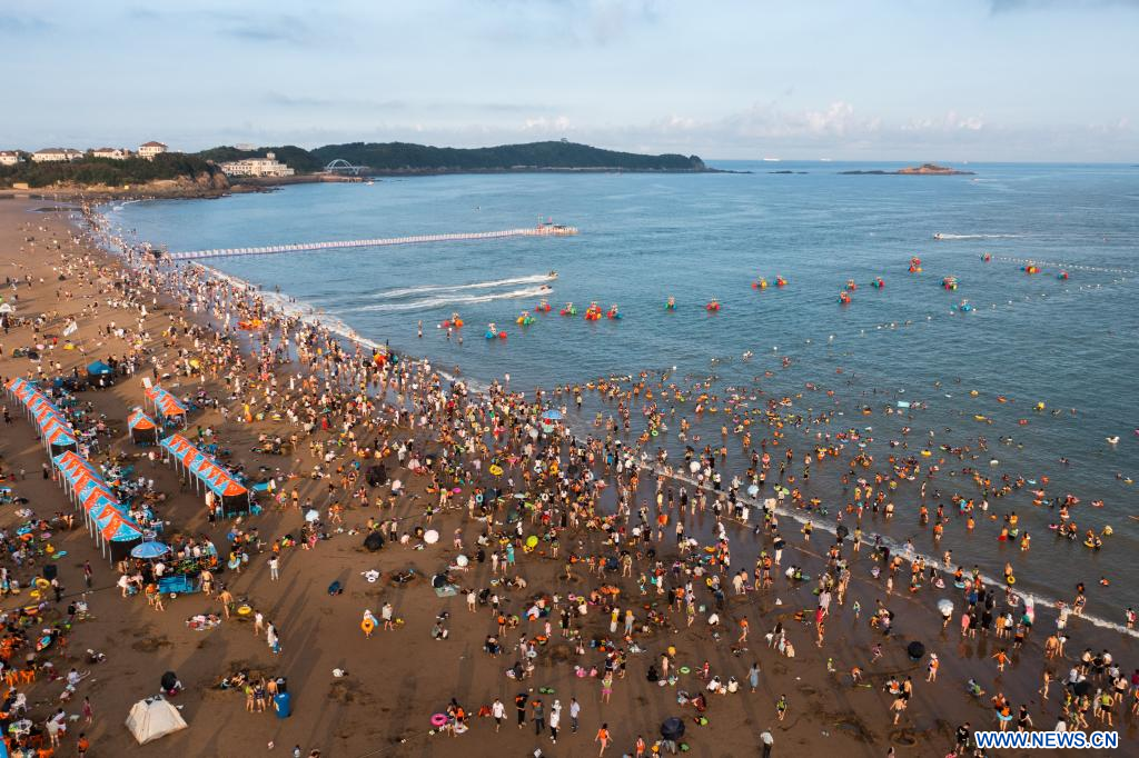 ZHOUSHAN, 3 agosto, 2022 (Xinhua) -- Imagen del 2 de agosto de 2022 de turistas disfrutando del tiempo junto al mar en el punto escénico de Zhujiajian, en Zhoushan, en la provincia de Zhejiang, en el este de China. El punto escénico de Zhujiajian ha proporcionado varias formas de entretenimiento junto al mar para los turistas con la finalidad de impulsar el turismo durante las vacaciones de verano. (Xinhua/Xu Yu)