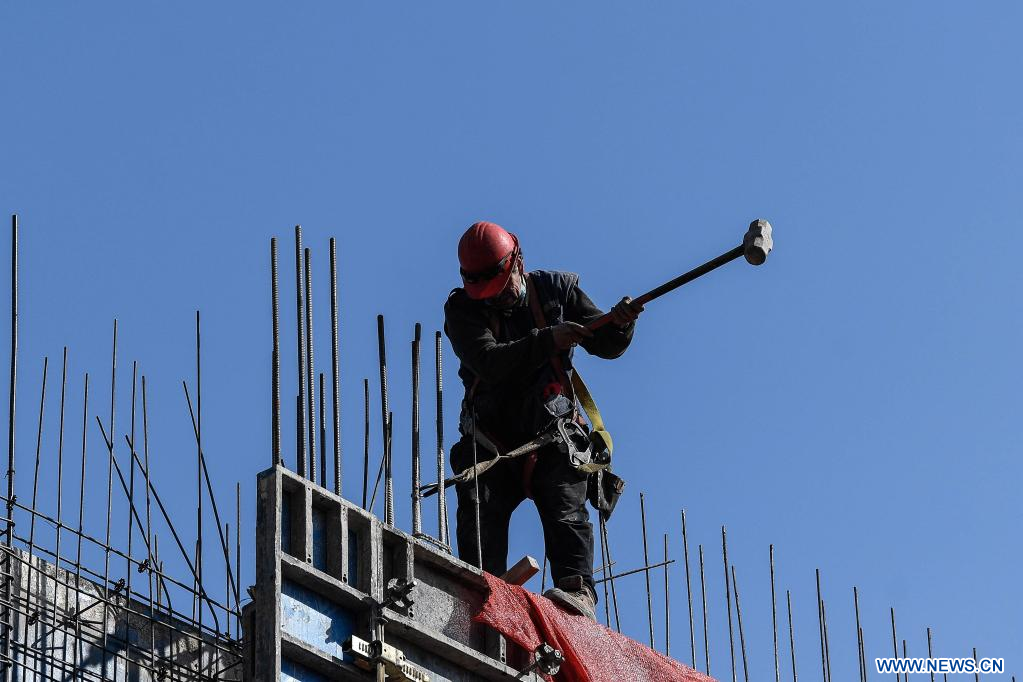 SANTIAGO, 5 agosto, 2022 (Xinhua) -- Un trabajador labora en un sitio de construcción, en Santiago, capital de Chile, el 5 de agosto de 2022. (Xinhua/Jorge Villegas)