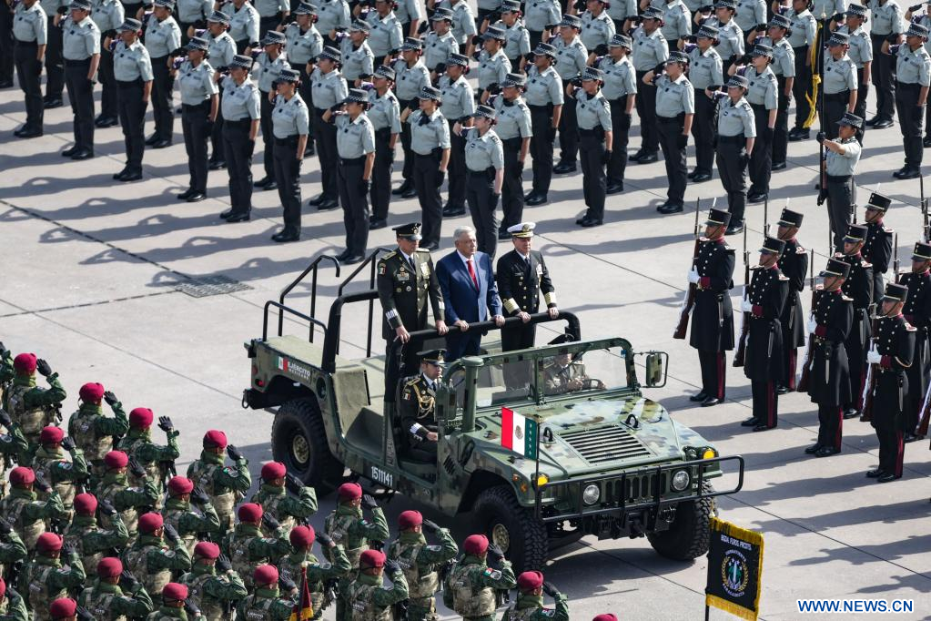 CIUDAD DE MEXICO, 16 septiembre, 2022 (Xinhua) -- El presidente mexicano, Andrés Manuel López Obrador (c), asiste al Desfile Cívico Militar por el 212º Aniversario del Grito de Independencia, en la Ciudad de México, capital de México, el 16 de septiembre de 2022. (Xinhua/Xin Yuewei)