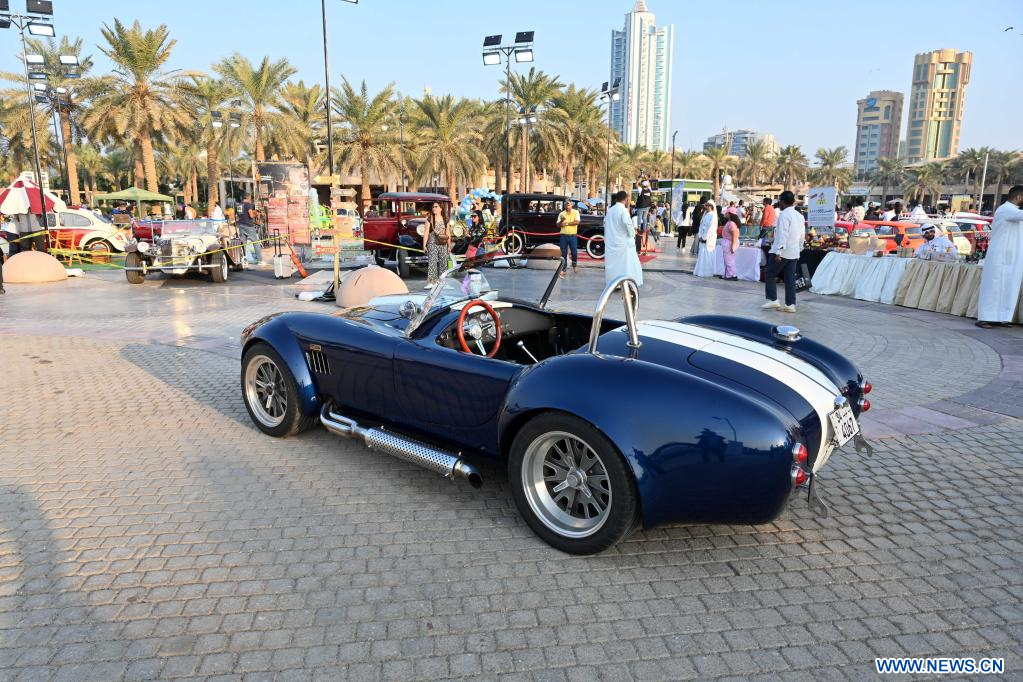 GOBERNACION DE HAWALLI, 29 octubre, 2022 (Xinhua) -- Imagen del 28 de octubre de 2022 de personas visitando una exposición de automóviles clásicos en la Gobernación de Hawalli, Kuwait. (Xinhua/Asad)