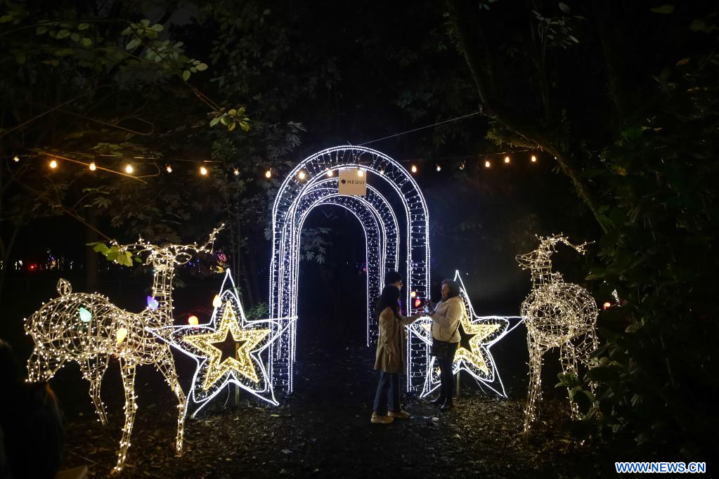 BOGOTA, 8 diciembre, 2022 (Xinhua) -- Imagen del 7 de diciembre de 2022 de personas visitando la exhibición "Polinizando", un montaje de más de 300 piezas artísticas en el marco de la temporada navideña, en el Jardín Botánico, en Bogotá, Colombia. (Xinhua/Jhon Paz)