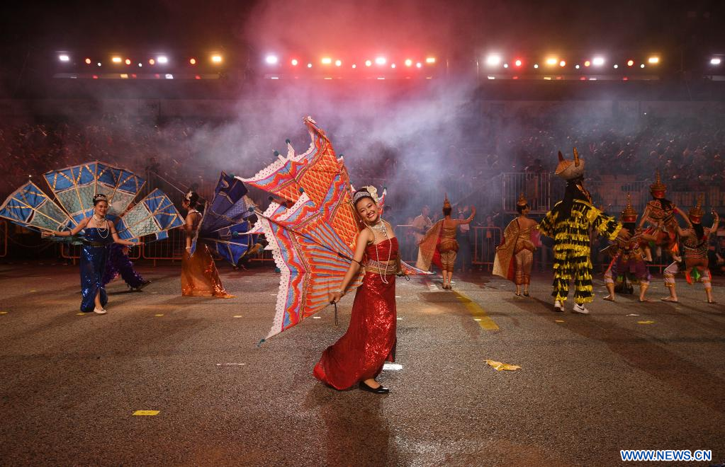 SINGAPUR, 4 febrero, 2023 (Xinhua) -- Imagen del 3 de febrero de 2023 de artistas de Tailandia bailando en el anual desfile de Chingay de celebración del Año Nuevo Lunar, que se ha llevado a cabo desde 1973, en Singapur. (Xinhua/Then Chih Wey)