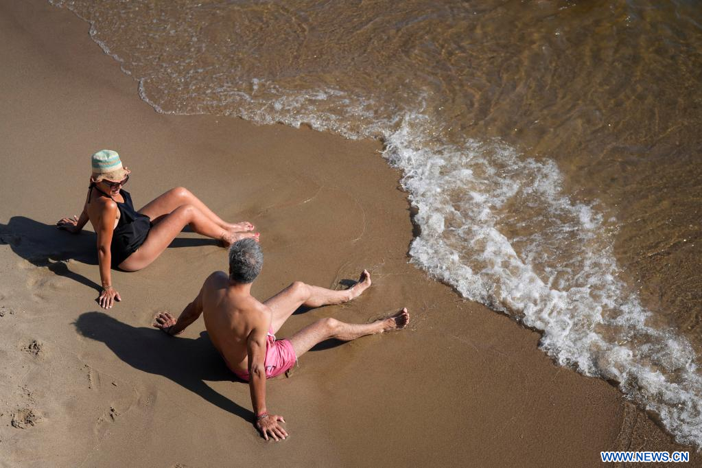 MONTEVIDEO, 11 febrero, 2023 (Xinhua) -- Personas se refrescan en el Río de la Plata durante una ola de calor frente a la Ciudad Vieja, en Montevideo, capital de Uruguay, el 11 de febrero de 2023. (Xinhua/Nicolás Celaya)