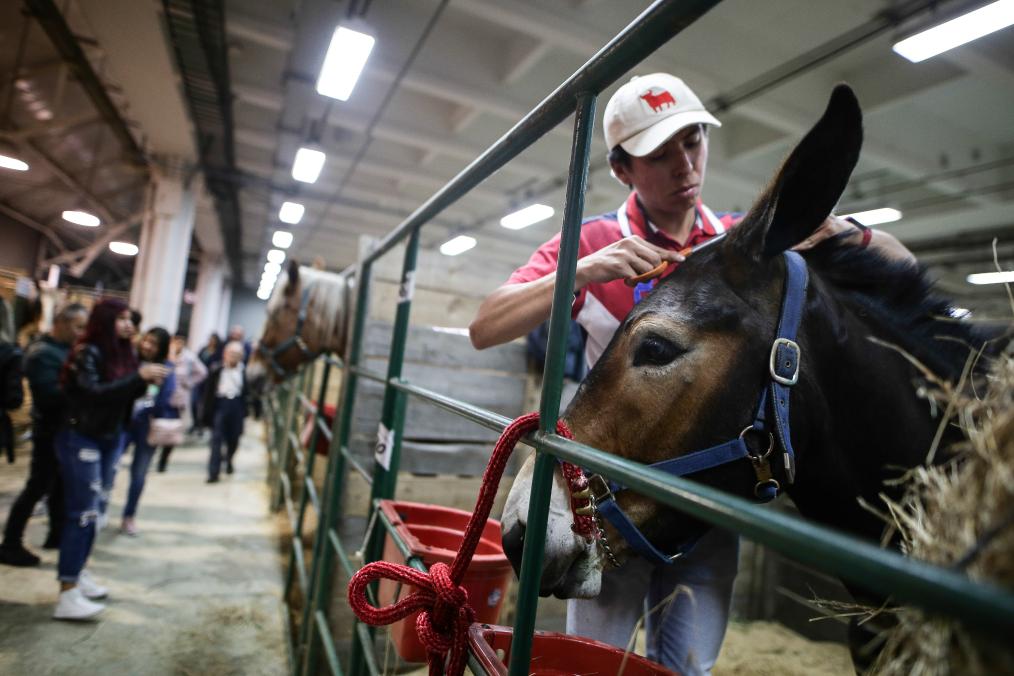 BOGOTA, 15 julio, 2023 (Xinhua) -- Imagen del 14 de julio de 2023 de un hombre preparando un equino durante la XXIV Agroexpo 2023, en el recinto ferial Corferias, en Bogotá, Colombia. (Xinhua/Str)