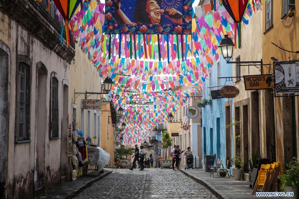 SALVADOR, 6 julio, 2023 (Xinhua) -- Imagen del 5 de julio de 2023 de una vista de una calle en Pelourinho, en Salvador, estado de Bahía, Brasil. (Xinhua/Wang Tiancong)