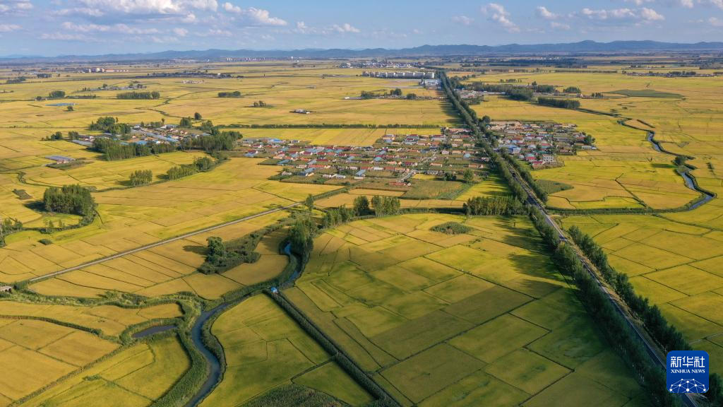 CHANGCHUN, 13 septiembre, 2023 (Xinhua) -- Vista aérea del 12 de septiembre de 2023 de agricultores cosechando arroz en un campo de arroz, en la aldea de Huajia del poblado de Wanchang, en la ciudad de Jilin, en la provincia de Jilin, en el noreste de China. El poblado de Wanchang, una de las importantes áreas productoras de arroz de la provincia de Jilin, está aprovechando la temporada de cosecha de arroz con cáscara de este año. (Xinhua/Zhang Nan)