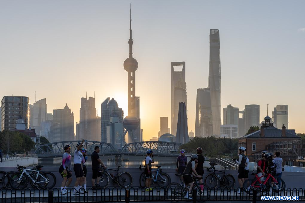 SHANGHAI, 4 noviembre, 2023 (Xinhua) -- Imagen del 3 de noviembre de 2023 de un paisaje de la ciudad de Shanghai al amanecer. La VI Exposición Internacional de Importaciones de China (CIIE, por sus siglas en inglés) está programada para celebrarse en Shanghai del 5 al 10 de noviembre. La exposición muestra el nuevo paradigma de desarrollo de China, una plataforma para la apertura de alto nivel y un bien público para todo el mundo. (Xinhua/Wang Xiang)